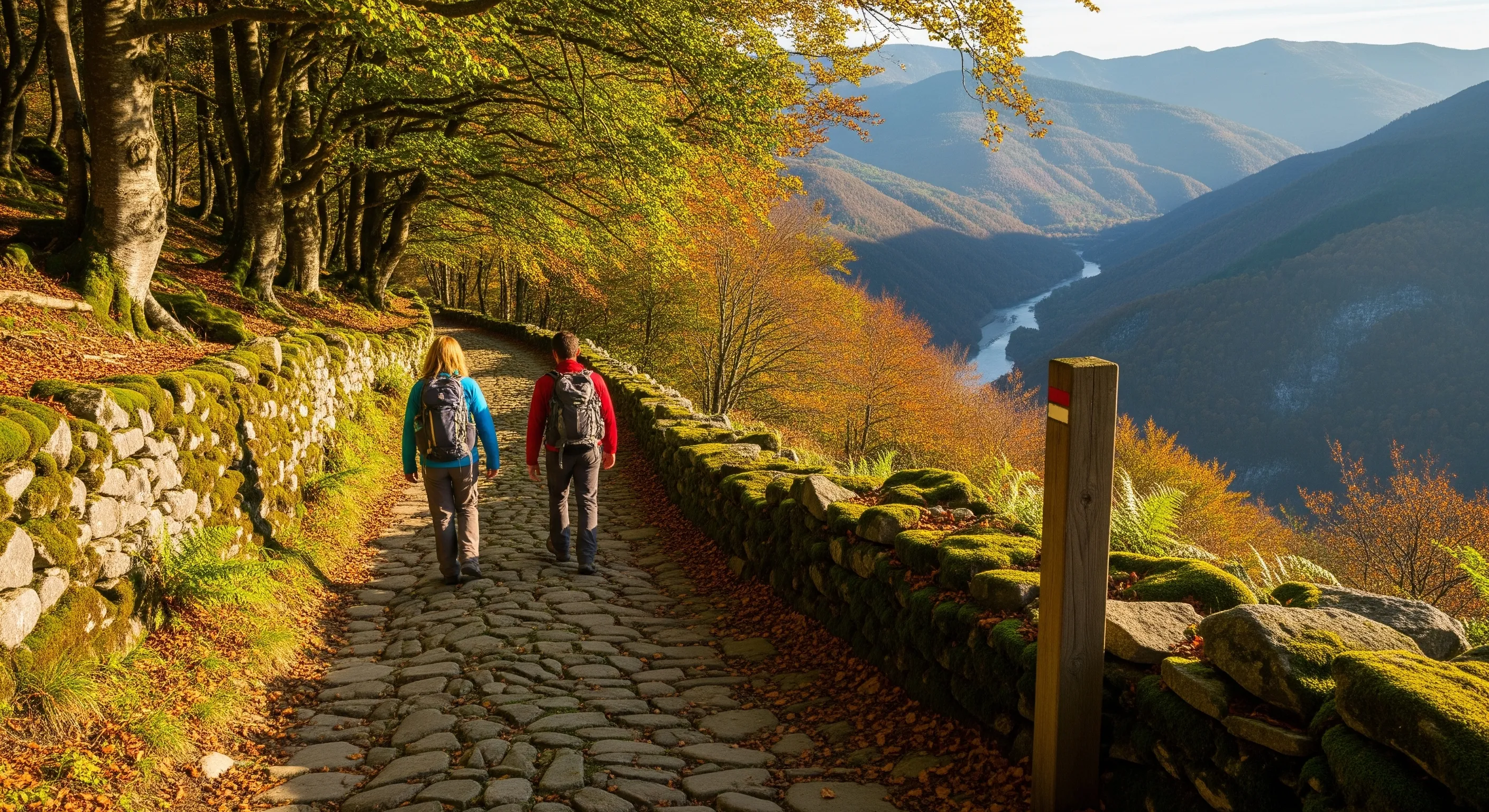 Recorre la Calzada de los Blendios, una ruta histórica que une la Meseta (Herrera de Pisuerga) con la costa cántabra (Suances), atravesando antiguos caminos romanos y medievales.